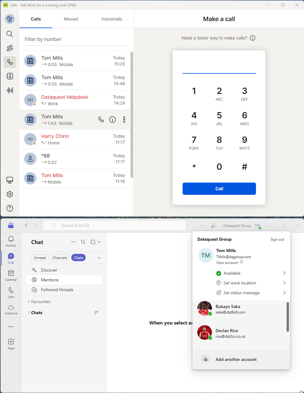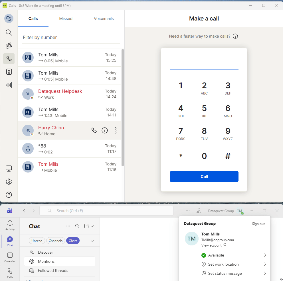 The 8x8 app has been configured to sync status with teams, meaning that if you are in a call on 8x8, your Teams Status will update to reflect this.